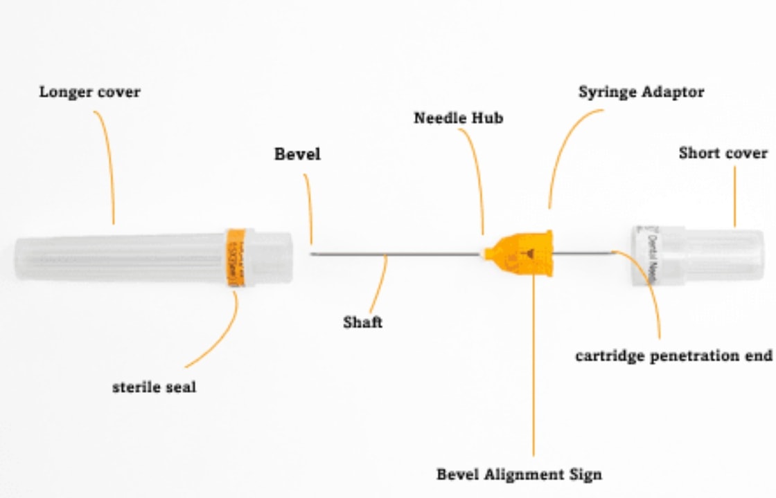 Bevel Orientation Mark helps dentists align the, needle tip accurately for effective administration.